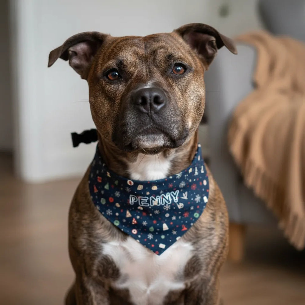 Whether you're dressing your dog for family photos, Christmas gatherings, holiday card shoots, or simply making everyday moments feel a little more magical, this festive plaid bandana delivers a warm, picture-perfect look. It’s the perfect blend of comfort, charm, and pitbull pride—made especially for the dogs who mean the world to us.
